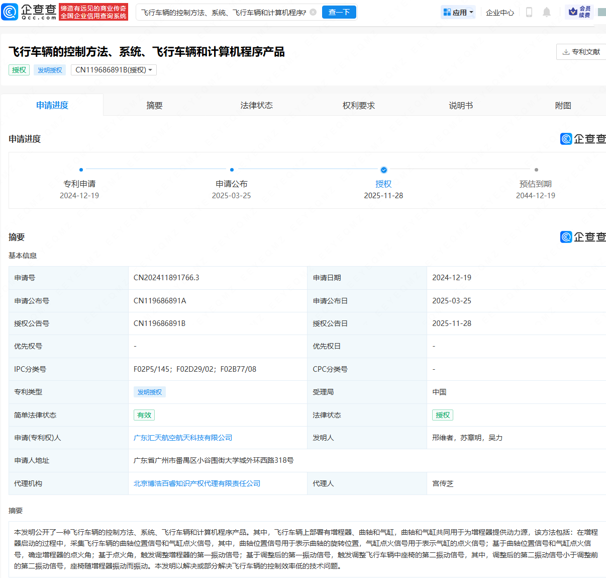 杠杆买股票 小鹏汇天申请的飞行车辆的控制方法相关专利获授权